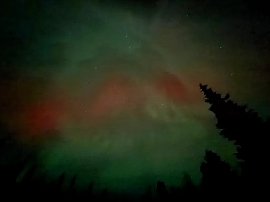 初日は曇りでしたが、諦めずオーロラを深夜まで追い続けたら、スマホでも信じられない写真が撮れました。」