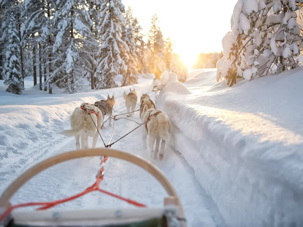サーリセルカに3連泊し、オーロラ観測に集中。日中は犬ぞりやスノーモービルなど、ラップランドならではのアクティビティを満喫します。